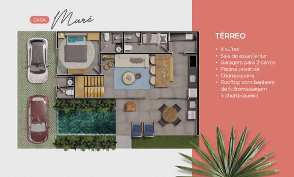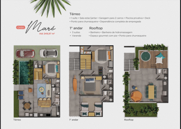 Casa Maré: Térreo, Pavimento 1 e Rooftop.