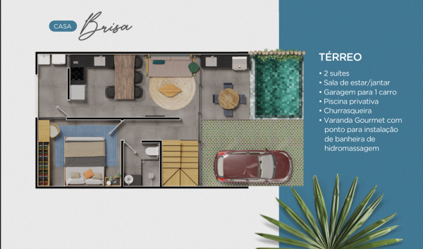 Guarita, Portaria 24h, Terraço, Lazer, Deck, Piscina Privativa, Playground, Salão Gourmet, Academia, Beach tenis, Carregador Veiculo Elétrico, Carrinho UTV, Hidromassagem, Parceria administração do imóvel, Piscina com prainha, Quadra Beach Tennis.